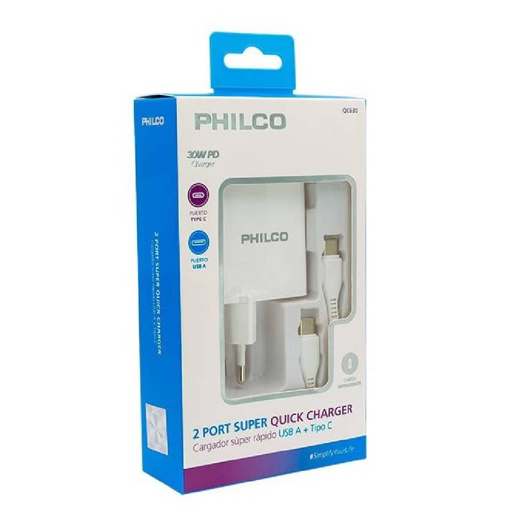 El Cargador Philco QC630 Super Rápido USB Tipo C 30W es un cargador diseñado para ofrecer una carga rápida y eficiente para tus dispositivos electrónicos. A continuación se describen sus principales características: