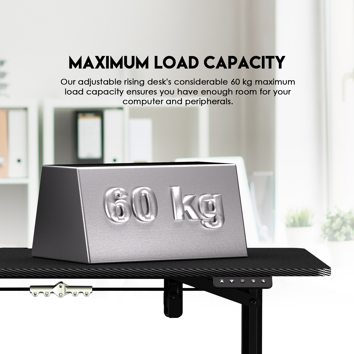 La superficie, con un diseño moderno y elegante, no solo añade un toque de sofisticación a tu oficina o estudio, sino que también es espaciosa con sus dimensiones de 110x60cm, proporcionando amplio espacio para tus dispositivos, libros y documentos. Con una capacidad de carga de hasta 60kg, este escritorio está preparado para soportar todo tu equipo de trabajo sin esfuerzo.