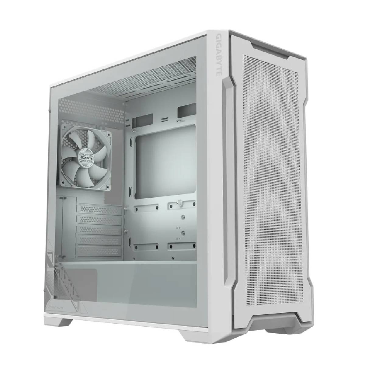 El Gigabyte C102 GLASS ICE tiene un diseño blanco que aporta una estética limpia y elegante, ideal para quienes buscan una PC que resalte por fuera y por dentro. La ventana lateral de vidrio templado permite una vista clara del interior, lo que lo convierte en una excelente opción para quienes tienen componentes con iluminación RGB, ya que los destaca visualmente.