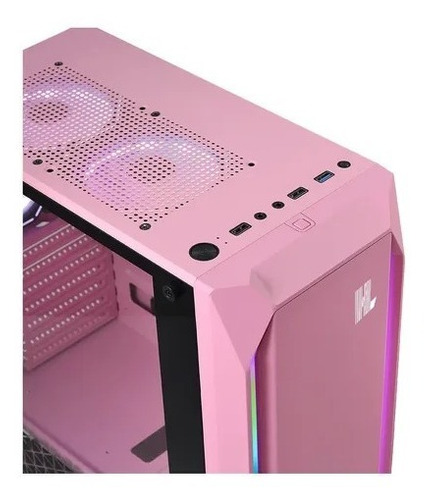 • Gabinete Gamer Modelo Pink Total Evolution. Posee un diseño único, con dos barras RGB y vidrio templado. Incluye 3 ventiladores, controlador y control remoto