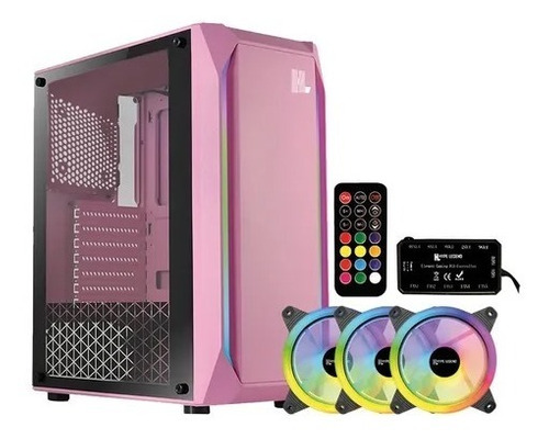 Gabinete Hype Legend Evolution Rosa + 3 Fans Controlador Rgb