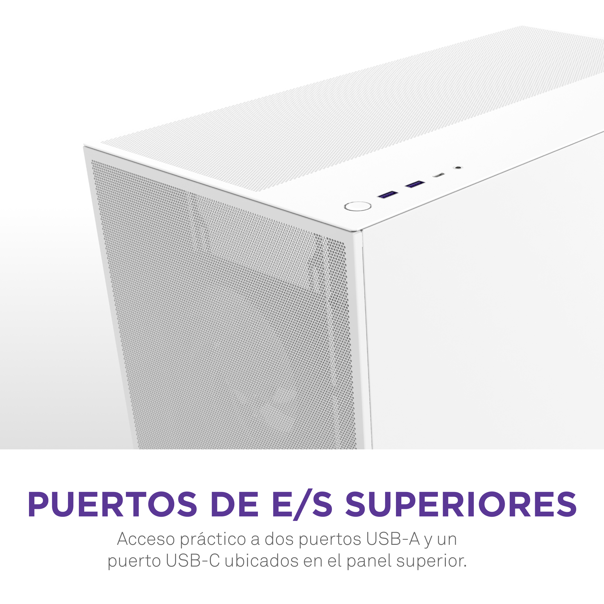 Acceso conveniente a 2 puertos USB-A y 1 puerto USB-C ubicados en el panel superior.