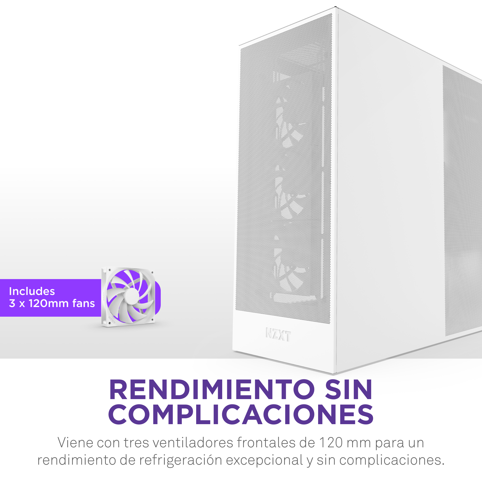 Incluye tres ventiladores de 120 mm en la parte frontal para una refrigeración excepcional desde el primer momento.