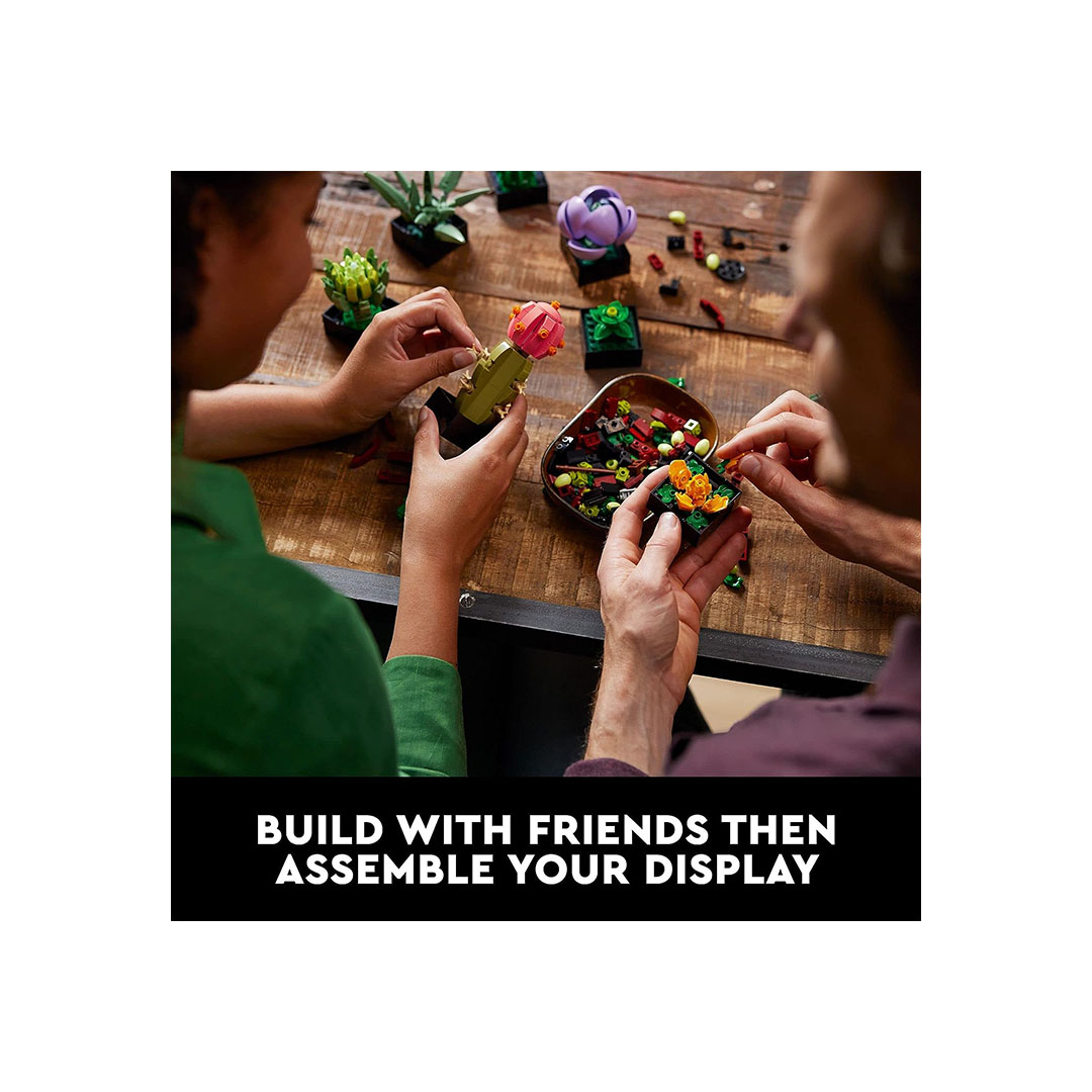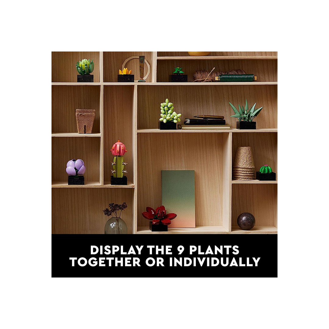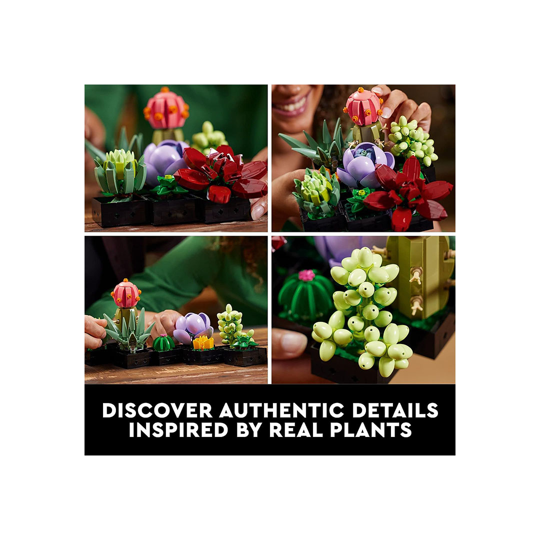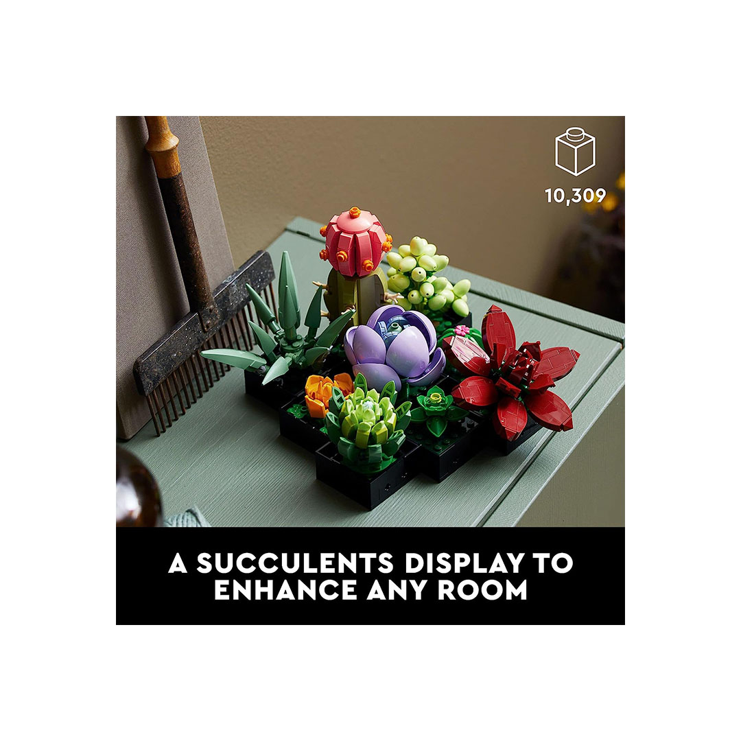 • Plantas Suculentas Artificiales: Este conjunto de LEGO permite a los adultos construir réplicas detalladas de plantas suculentas artificiales, que son populares en la decoración del hogar y en la jardinería interior.