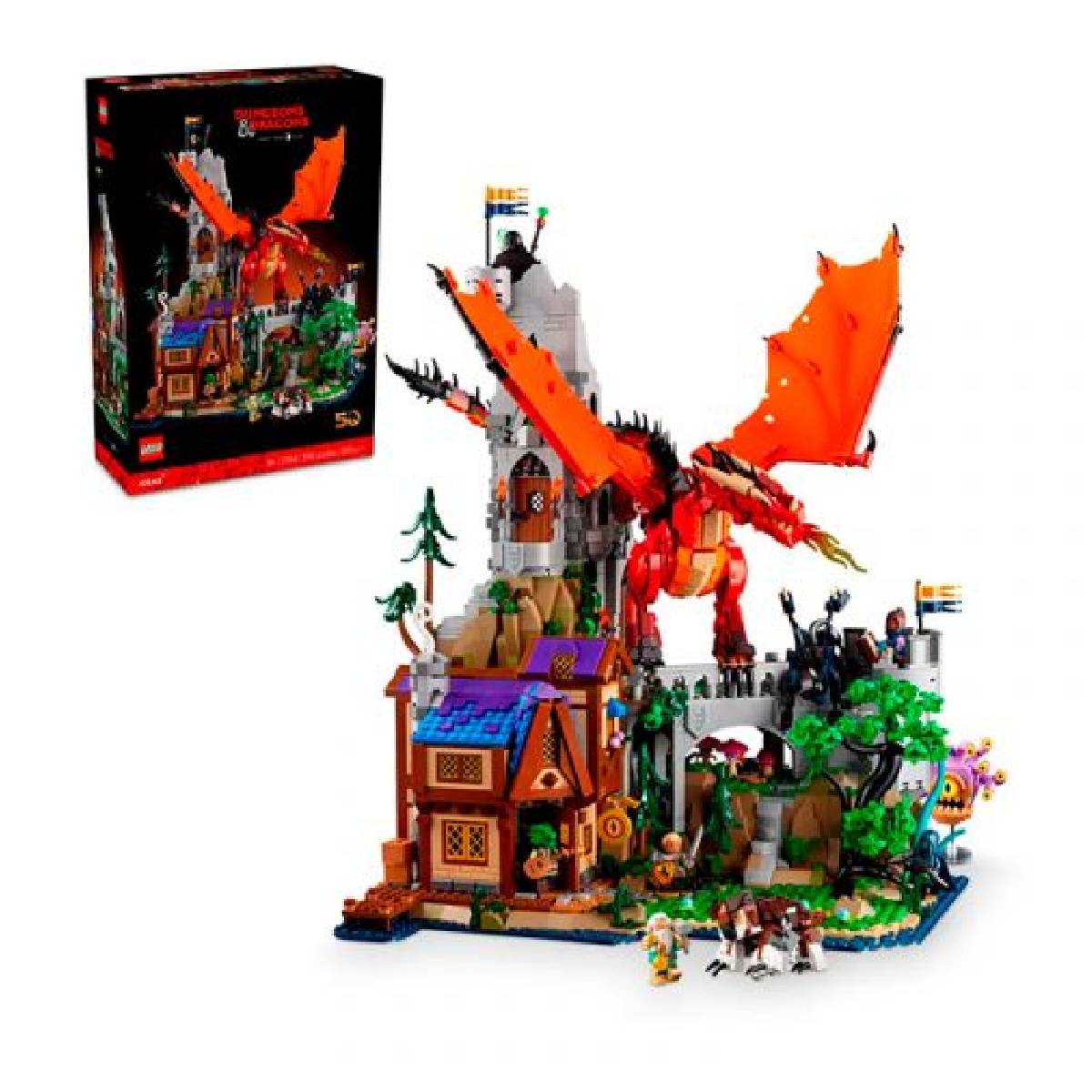 El set Lego Ideas: Dungeons & Dragons: Aventura del Dragón Rojo 21348 es un homenaje al icónico universo de Dungeons & Dragons, donde los jugadores podrán recrear una emocionante aventura llena de fantasía. Este set presenta un escenario de batalla épico con un dragón rojo impresionante, diseñado con gran detalle, junto a un paisaje que incluye elementos como una mazmorra, personajes héroes, y otros detalles que capturan la esencia del mundo de D&D. El set permite recrear combates y aventuras típicas del juego de rol, siendo perfecto tanto para fanáticos del juego como para coleccionistas de Lego.