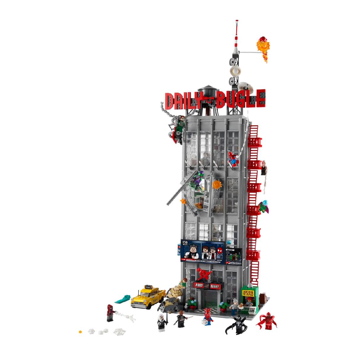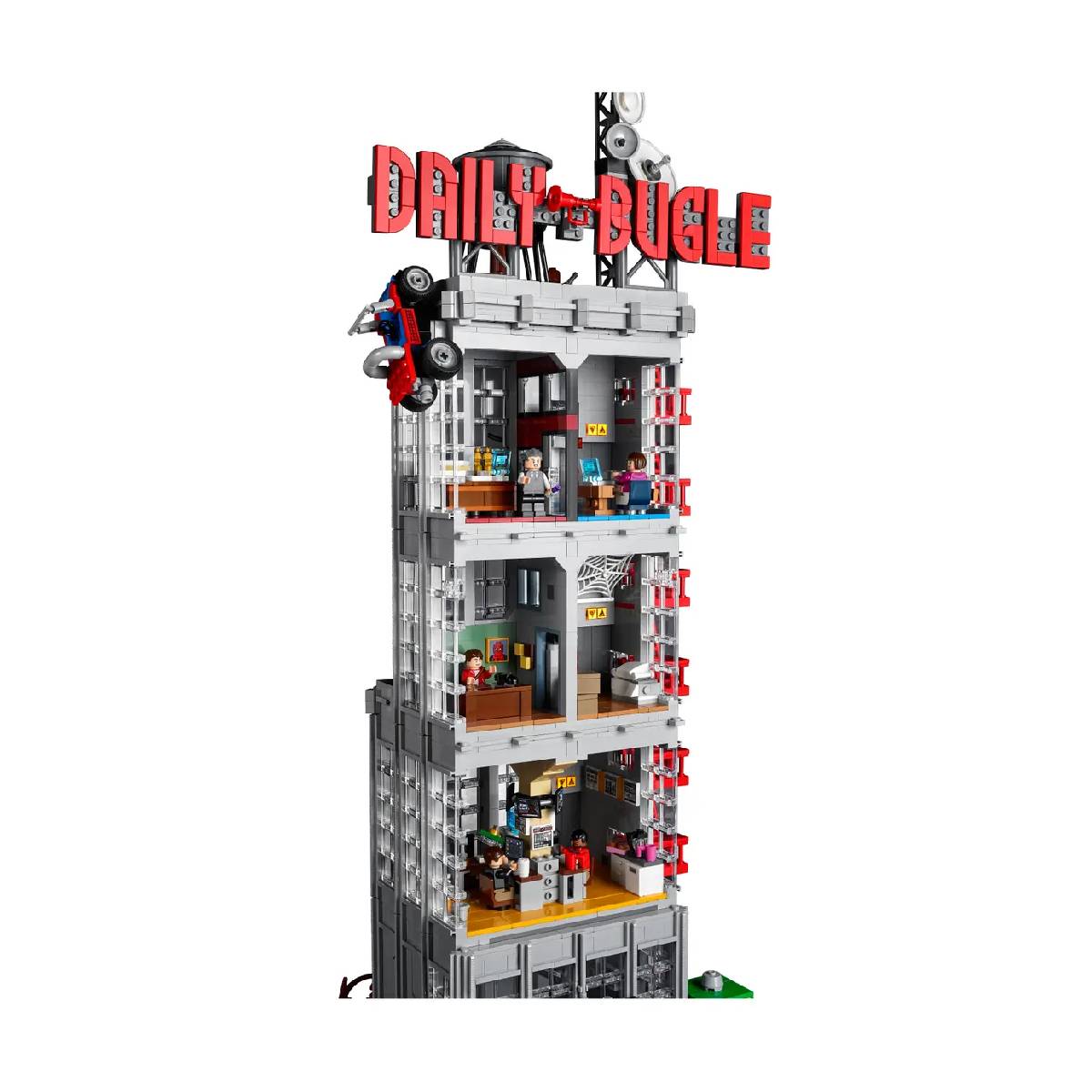 Detalles interiores y exteriores: El set incluye no solo la fachada, sino también el interior del edificio. El espacio interior está lleno de detalles, como escritorios, una sala de redacción, y las oficinas de J. Jonah Jameson. También hay varios accesorios que representan el entorno de trabajo de los periodistas y fotógrafos.