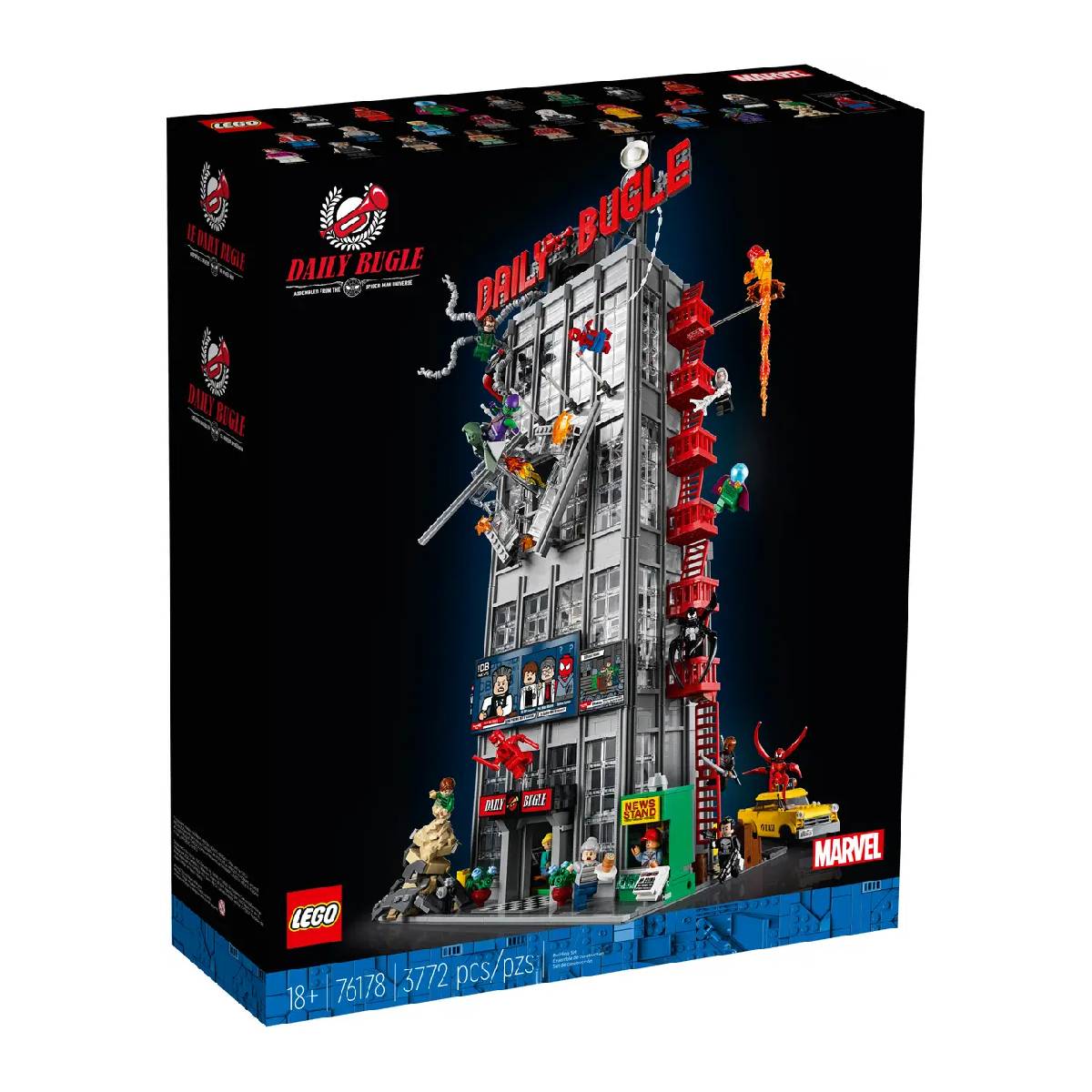 El LEGO Marvel: Daily Bugle Spider-Man (76178) es un set icónico que recrea el famoso edificio del Daily Bugle, la sede del periódico en el universo de Marvel Comics, especialmente conocido por ser el lugar donde trabaja Peter Parker (Spider-Man) como fotógrafo. Este set es un homenaje tanto a Spider-Man como a otros personajes del universo Marvel, y se convierte en una pieza de colección ideal para los fanáticos del cómic, la saga de Spider-Man y los sets de LEGO detallados.