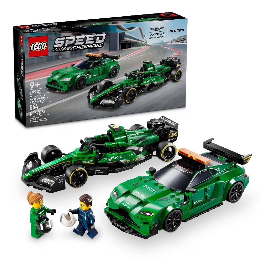 Incluye minifiguras de pilotos de Aston Martin equipados con cascos y trajes de carreras