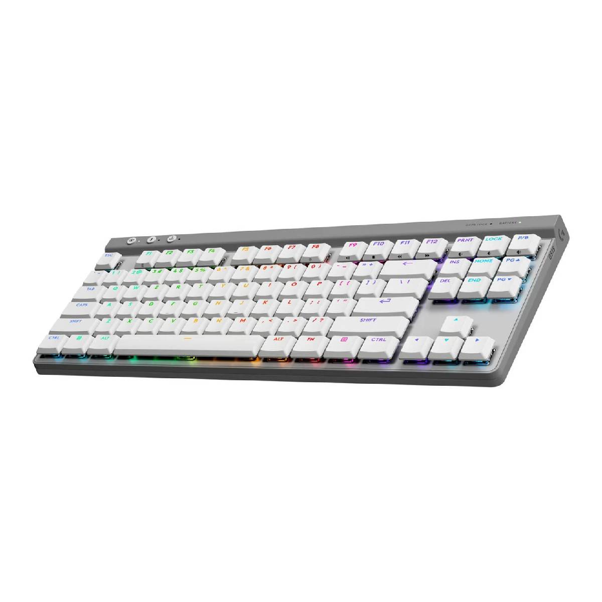 El G515 TKL White ofrece opciones de interruptores GX Red (lineales y suaves), GX Blue (clickeantes y táctiles), y GX Brown (táctiles y silenciosos), permitiendo al usuario elegir según sus preferencias de respuesta y sonido.