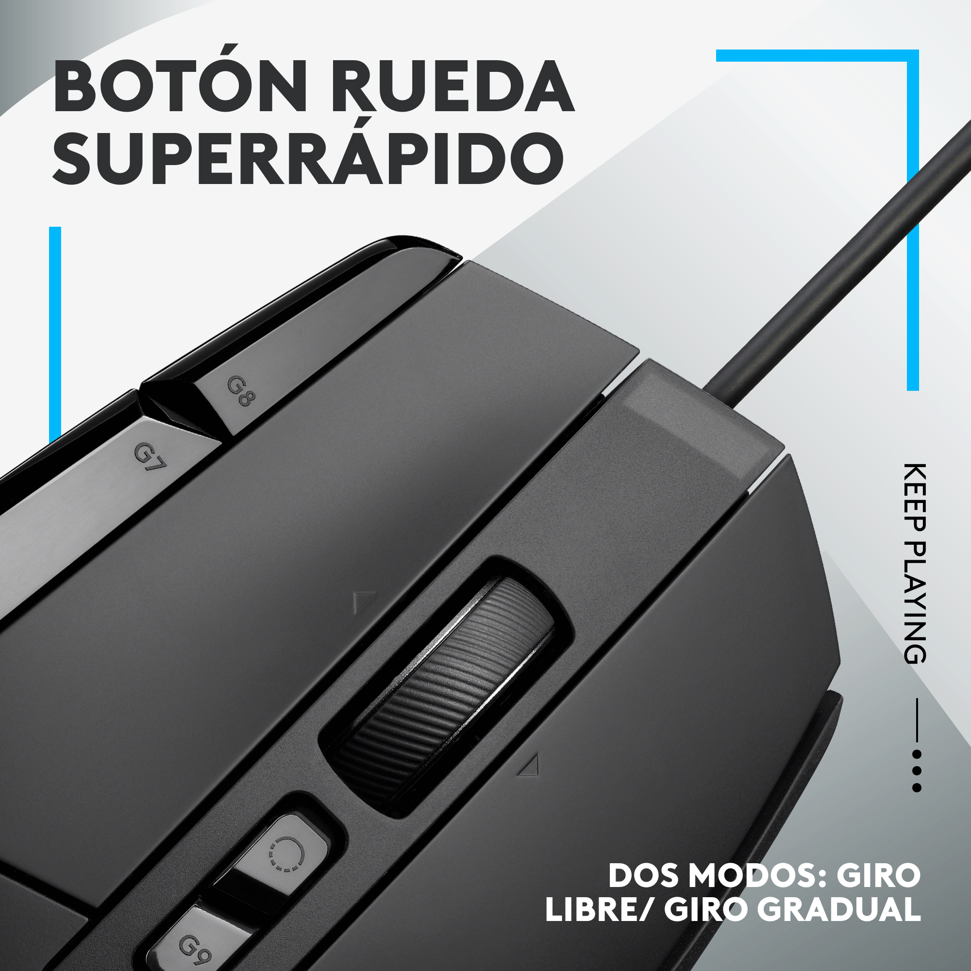 • Rueda de desplazamiento de doble modo: pasa de un giro libre rápido a uno preciso línea por línea, y se inclina hacia la izquierda y la derecha para obtener dos controles adicionales personalizables»