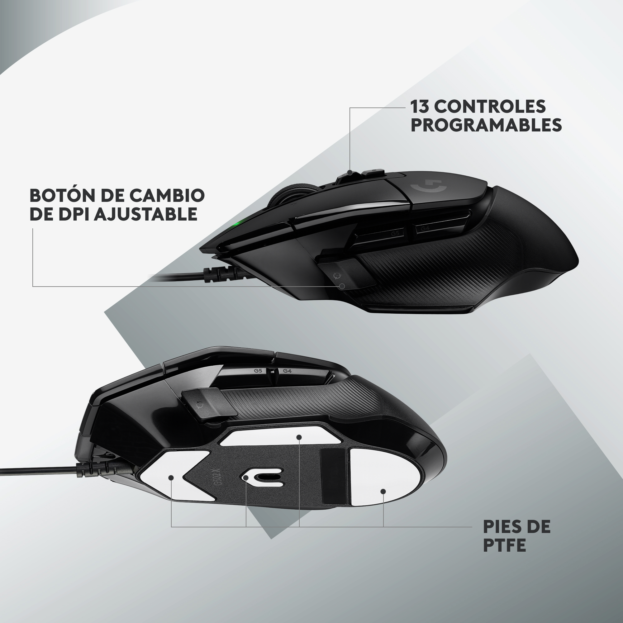 «G502 X, esta versión del mouse para gaming más popular de Logitech, combina un legado de rendimiento con tecnologías gaming de calidad. G502 X también introduce interruptores híbridos óptico-mecánicos LIGHTFORCE para los botones primarios izquierdo y derecho. Con sensor submicrónico HERO 25K, botón de cambio de DPI reversible y extraíble, rueda de desplazamiento rediseñada con una doble modalidad de línea por línea rápida y precisa, diseño ligero con un grosor fino.