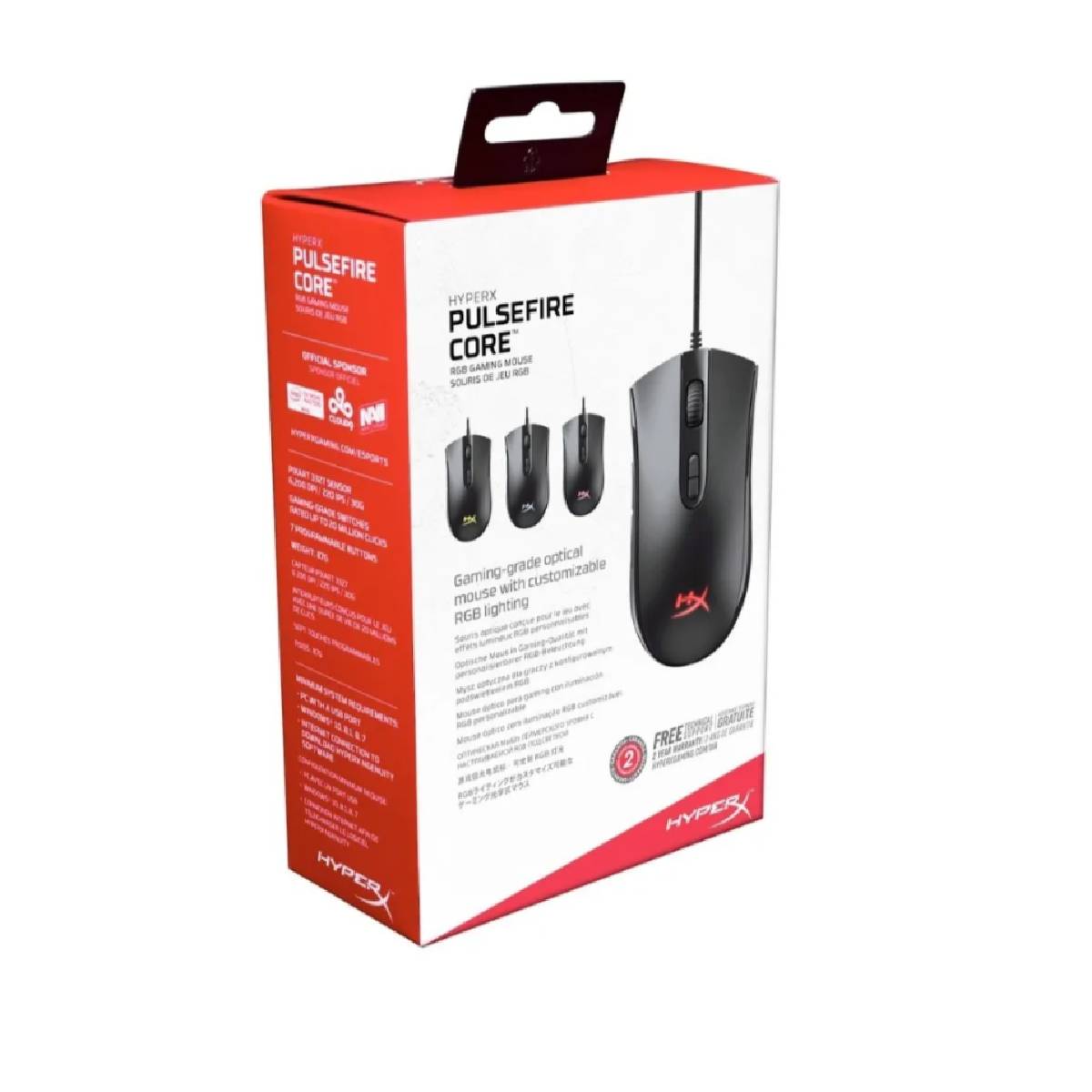 El HyperX Pulsefire Core™ tiene todo lo que buscan los jugadores de verdad en un ratón para juegos RGB con cable: solidez y confort. El sensor óptico Pixart 3327 permite a los jugadores un seguimiento preciso y exacto, sin aceleración de hardware, y cuenta con ajustes nativos de ppp, de hasta 6200 ppp. El diseño ergonómico del Pulsefire Core incorpora laterales antideslizantes texturizados para aferrarlo cómodamente y sin que resbale. Su forma geométrica es adecuada aferrarlo con la palma o como garra. Dispone de interruptores de alta calidad con nítida respuesta táctil, para hasta 20 millones de clics. Iluminación personalizada, ajustes de ppp y macros para 7 botones programables con software HyperX NGenuity para configurar el ratón exactamente como quieras. Los patines de la Pulsefire Core ayudan a apuntar con precisión, posibilitando un deslizamiento suave y controlador al mover el ratón.