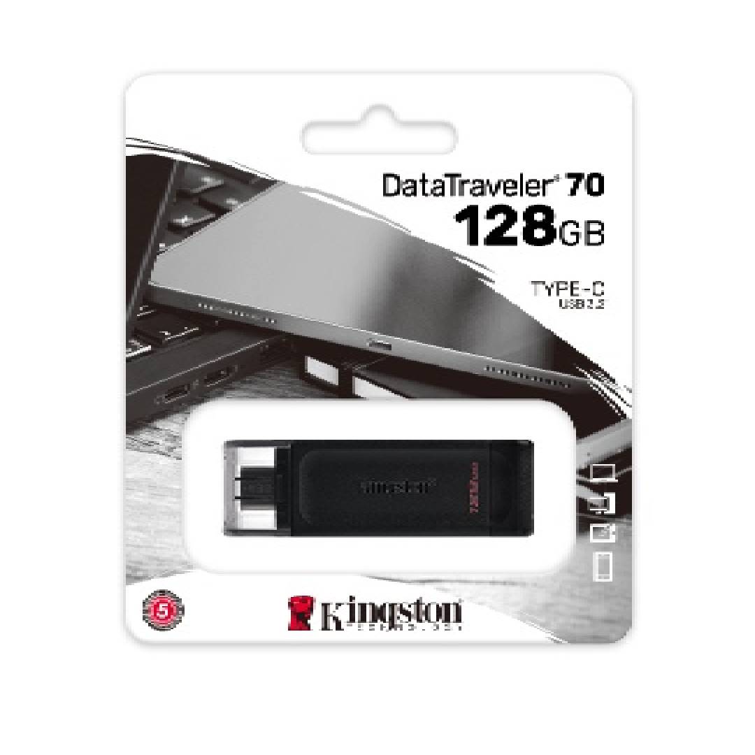 El Pendrive Kingston DataTraveler 70 USB-C de 128GB es una unidad flash compacta y eficiente diseñada para dispositivos con puerto USB-C. Cuenta con las siguientes características:
