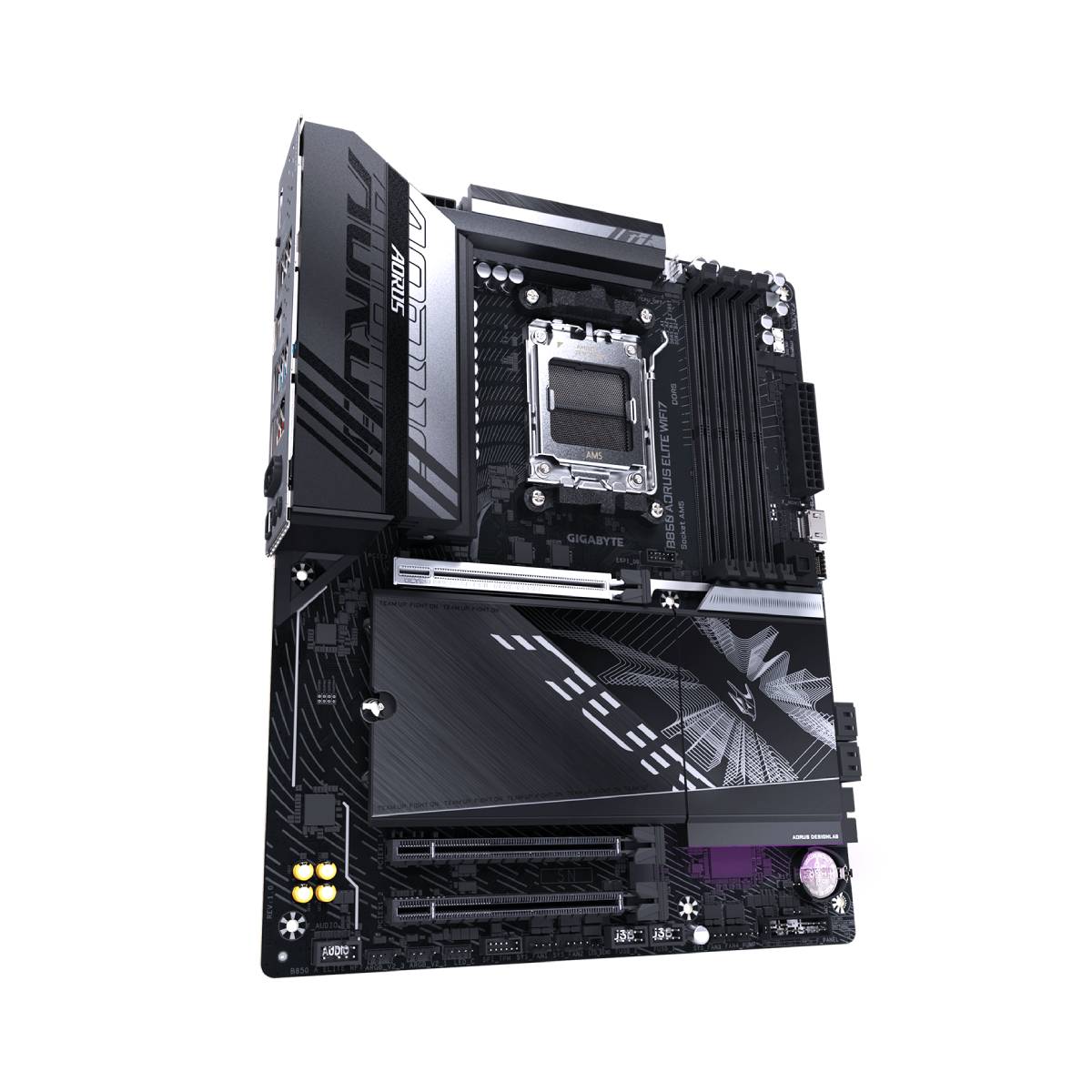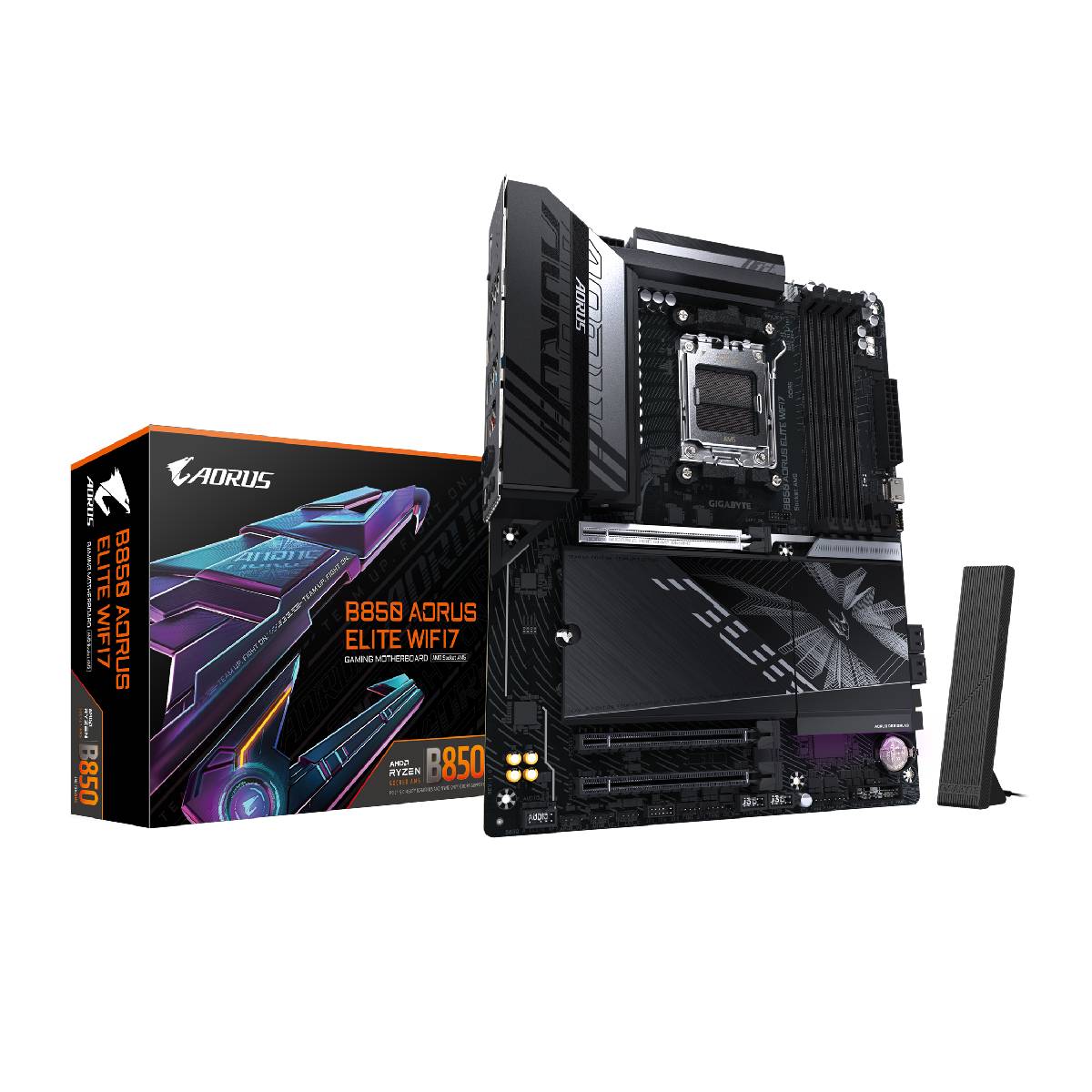 Además, la GIGABYTE B850 facilita la instalación y el acceso con características como el WIFI EZ-Plug, que simplifica la instalación de antenas, y el PCIe EZ-Latch Plus, que mejora el acceso a las ranuras PCIe. Es compatible con procesadores AMD Ryzen™ 9000, 8000 y 7000 Series, lo que la convierte en una plataforma robusta y escalable para gamers y usuarios avanzados que buscan lo último en tecnología.
