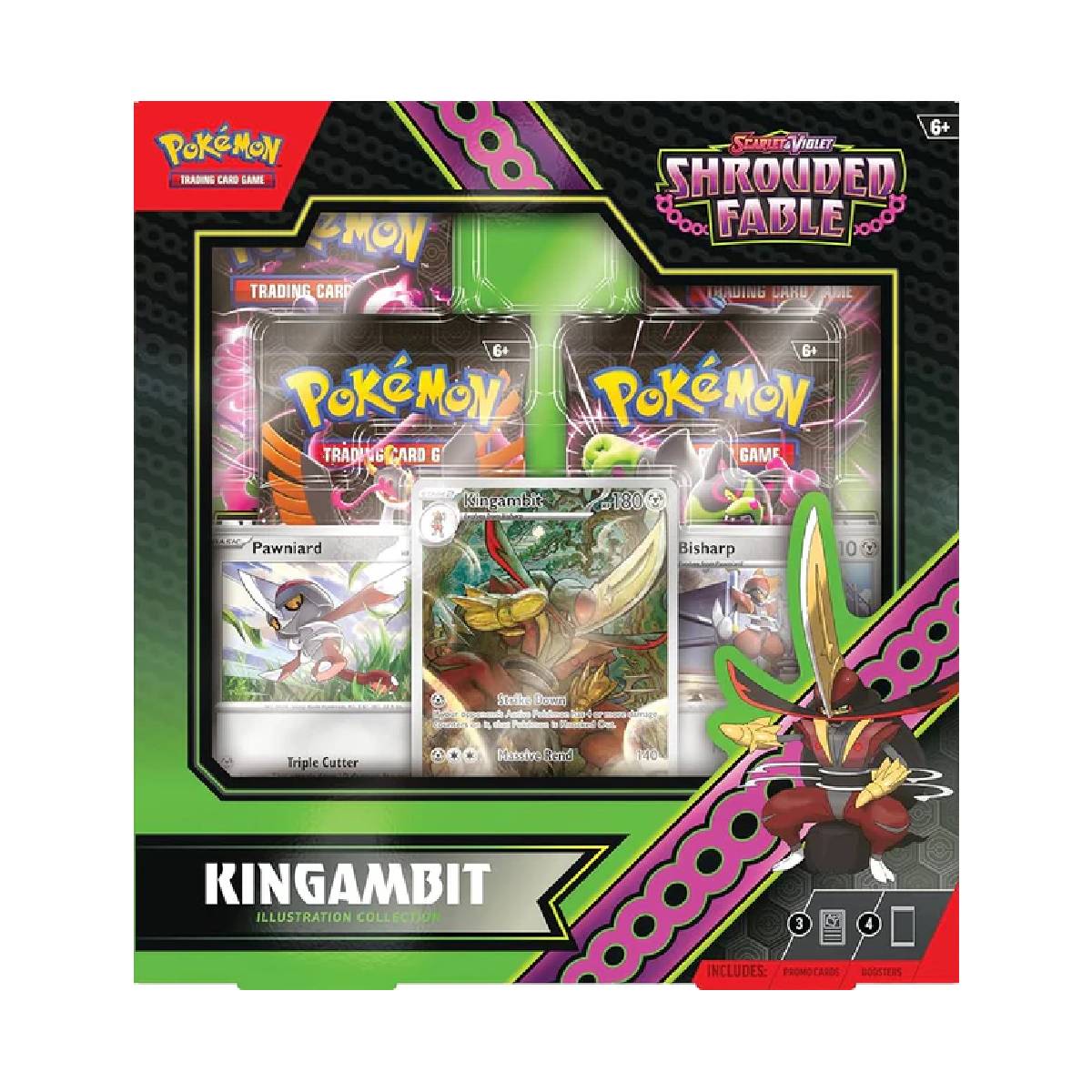 ¡Sumérgete en el enigmático mundo de Pokémon TCG: Illustration Collection – Kingambit, Shrouded Fable Inglés! Este exclusivo set está diseñado para los verdaderos fanáticos del Pokémon TCG, destacando la majestuosidad de Kingambit con ilustraciones únicas. En esta colección encontrarás: