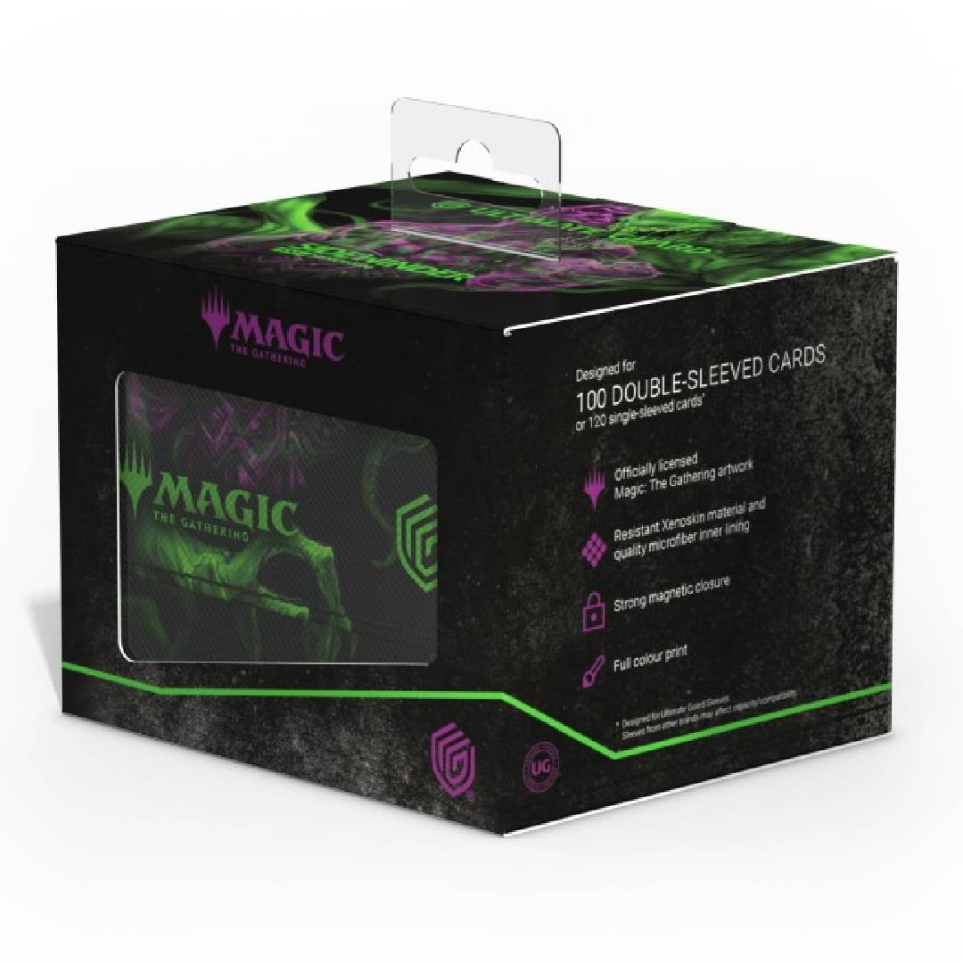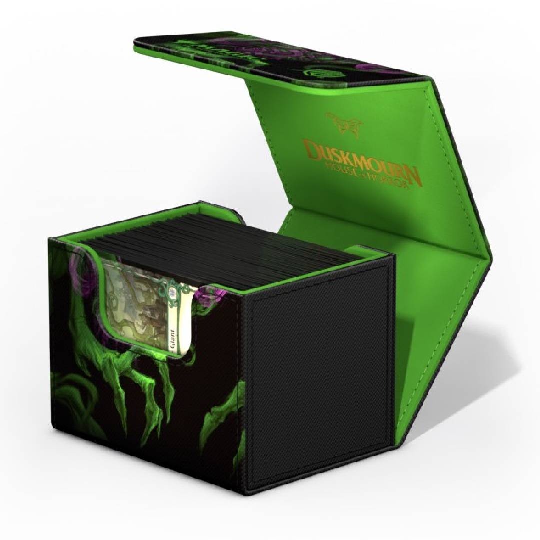 Capacidad: Este portamazo está diseñado para albergar más de 100 cartas enfundadas, lo que lo convierte en una excelente opción para mazos competitivos o commander (EDH) de Magic: The Gathering.