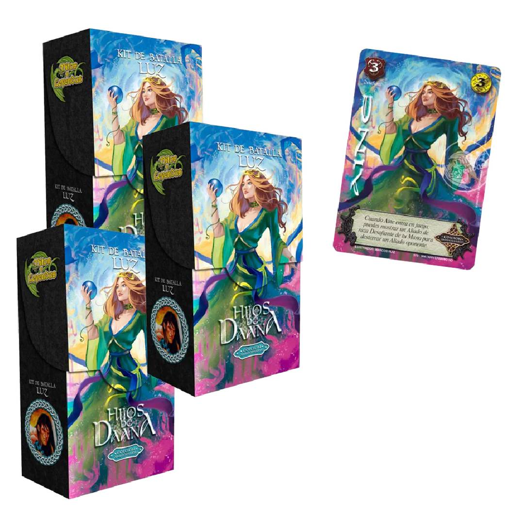 X3 Kit Luz El Kit de Batalla: Hijos de Daana Aniversario Luz es la oportunidad perfecta para sumergirte en el universo celta de Mitos y Leyendas Primer Bloque Extendido. Este kit conmemorativo celebra el regreso de los guerreros y dioses celtas en una versión renovada y exclusiva.