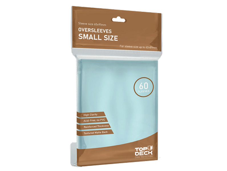 Los protectores transparentes TOP DECK ofrecen una capa adicional para proteger tus cartas. Ideales para usarse como protectores Standard o cubre protectores tamaño Small. Tienen un acabado texturado en su back para una excelente experiencia de barajado y un frente transparente glossy para una mayor claridad en la imagen de tus cartas. Características: – Contiene 60 Protectores por paquete – Tamaño TCG 65x91mm (puede utilizarse como Protectores para cartas tamaño Standard o como Cubre protectores para cartas con protector tamaño Small) – Acabado Glossy, reforzado en las esquinas y con Back texturizado – Color: Transparente Compatibilidad: – Compatible con los más importantes TCG como Protector Transparente Mini para TCG como Mitos y Leyendas, Humankind y Yu-gi-oh! – Compatible con todo tipo de coleccionables o juegos de mesa que utilicen accesorios de cartas tamaño Standard