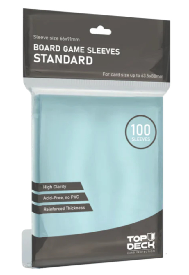 Los protectores transparentes TOP DECK ofrecen la mejor protección resguardar cartas de juegos de mesa que utilizan el tamaño estándar. Cuentan con una gran calidad en sus esquinas, con un grosor de 100 micrones y con un frente transparente glossy para una mayor claridad en la imagen de tus cartas.