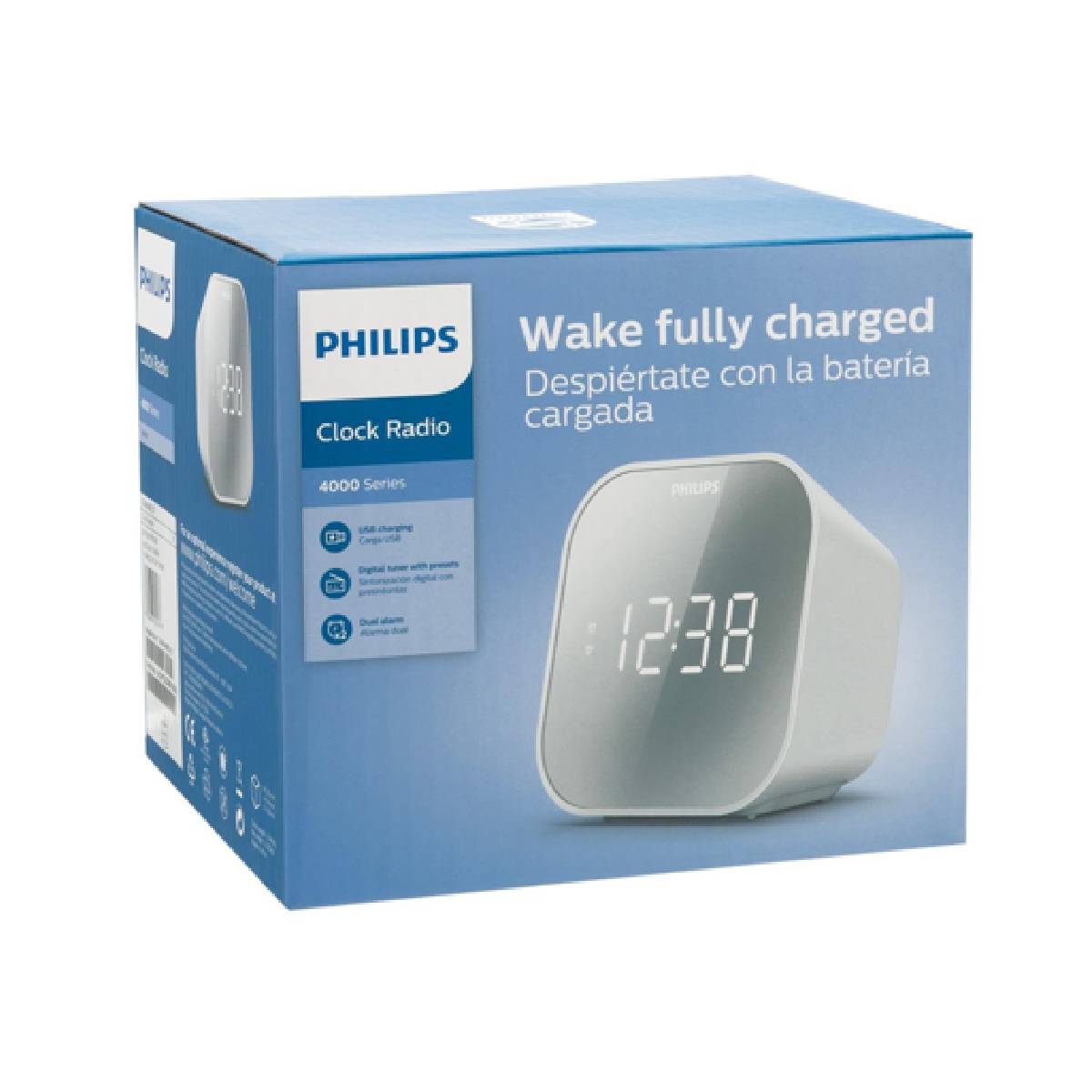 Puerto USB: Algunos modelos del reloj radio Philips incluyen un puerto USB que te permite cargar tu teléfono móvil u otros dispositivos mientras lo usas como reloj despertador, lo que es muy conveniente para mantener tus dispositivos cargados durante la noche.