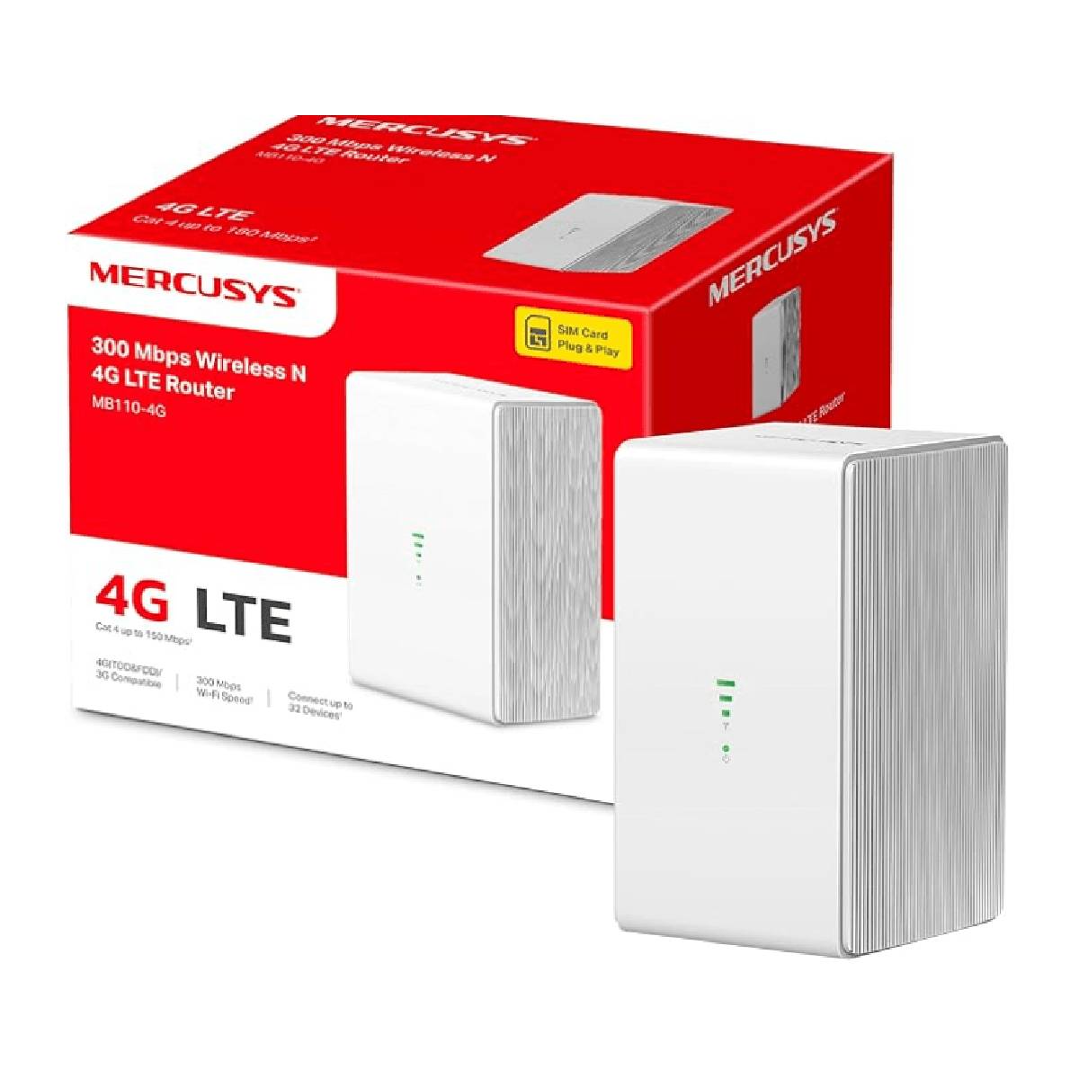 El Mercusys MB110 soporta redes 4G LTE, lo que te permite acceder a Internet de alta velocidad usando una tarjeta SIM (de tu proveedor de servicio móvil) para obtener una conexión de hasta 300 Mbps.