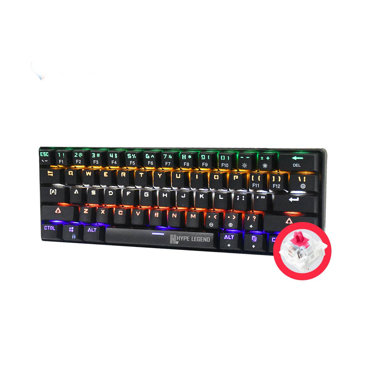 Teclado Gamer Hype Legend Rebel Shiro Pinku 60% SW Red RGB